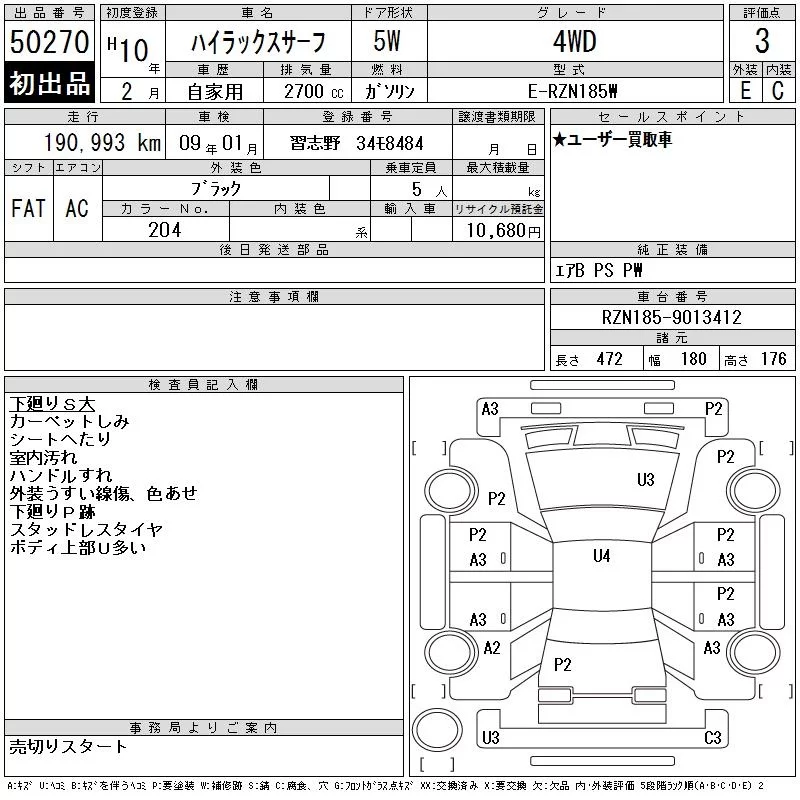 Toyota HILUX SURF с аукциона Японии CAA Tokyo лот № 50270