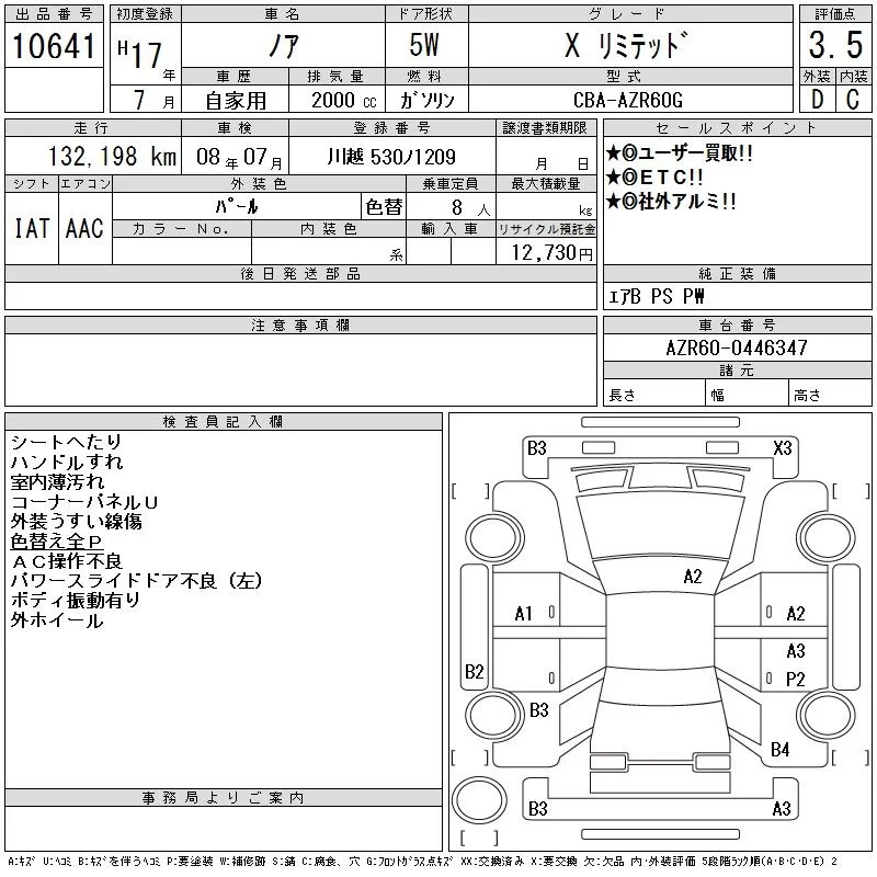 Toyota NOAH с аукциона Японии CAA Tokyo лот № 10641