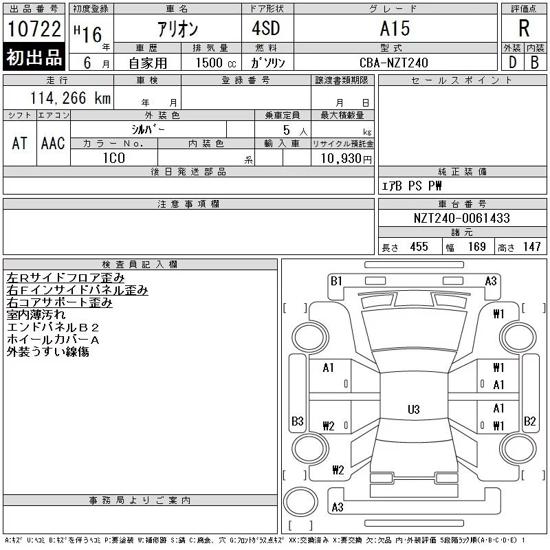 Toyota ALLION с аукциона Японии CAA Tokyo лот № 10722
