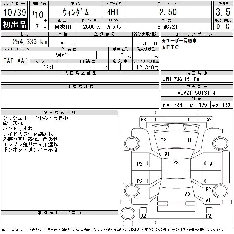 Toyota WINDOM с аукциона Японии CAA Tokyo лот № 10739