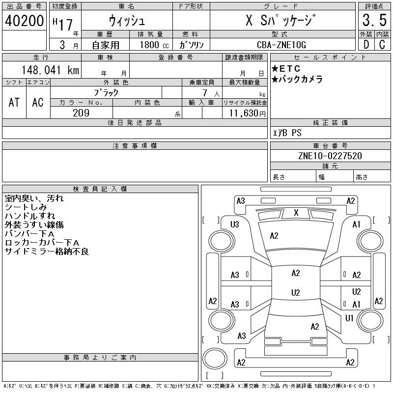 Toyota WISH с аукциона Японии CAA Tokyo лот № 40200