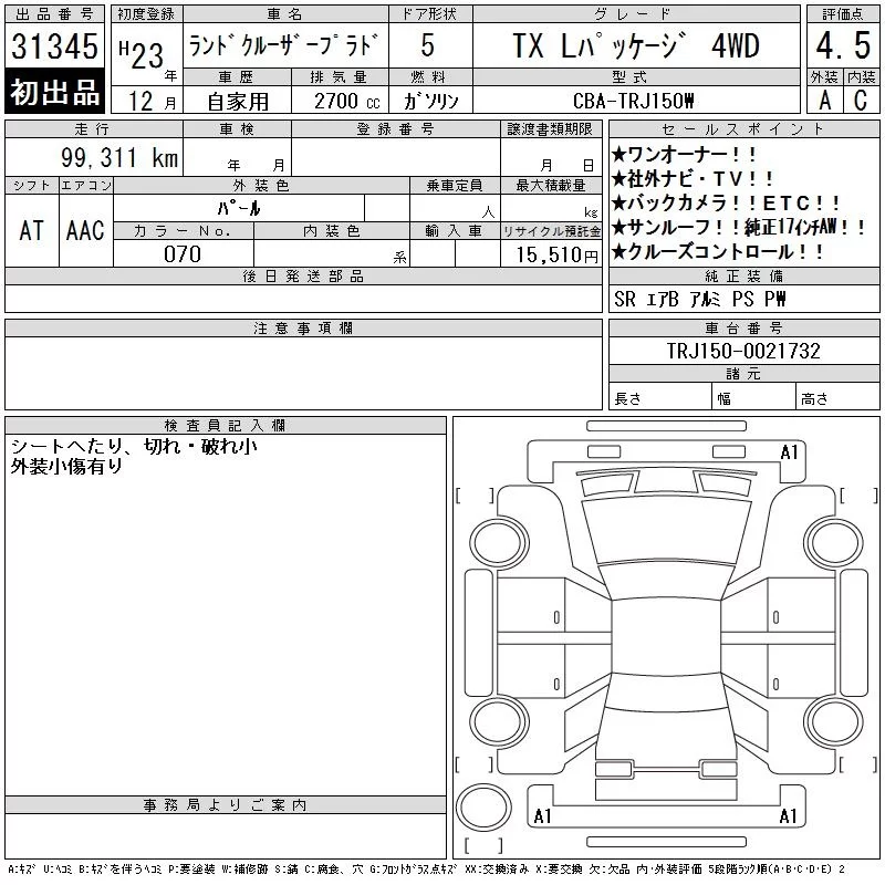 Toyota LAND CRUISER PRADO с аукциона Японии CAA Tokyo лот № 31345