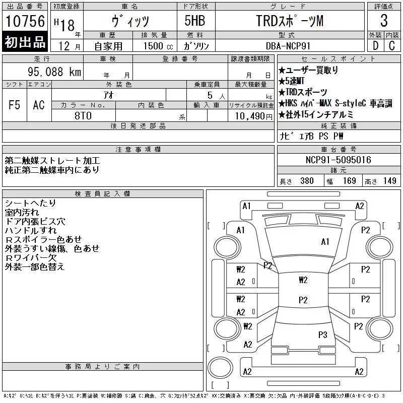 Toyota VITZ с аукциона Японии CAA Tokyo лот № 10756
