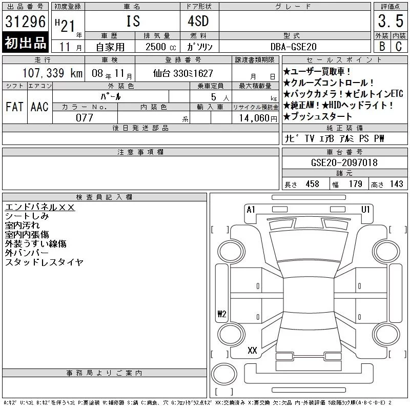 Lexus IS с аукциона Японии CAA Tokyo лот № 31296