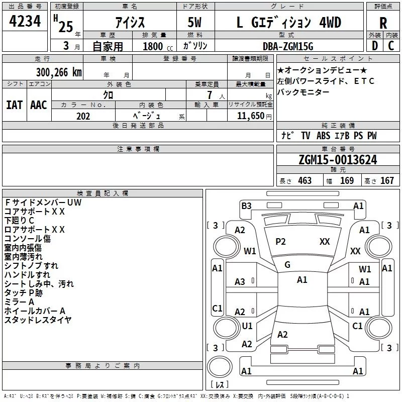 Toyota ISIS с аукциона Японии TAA Hiroshima лот № 4234