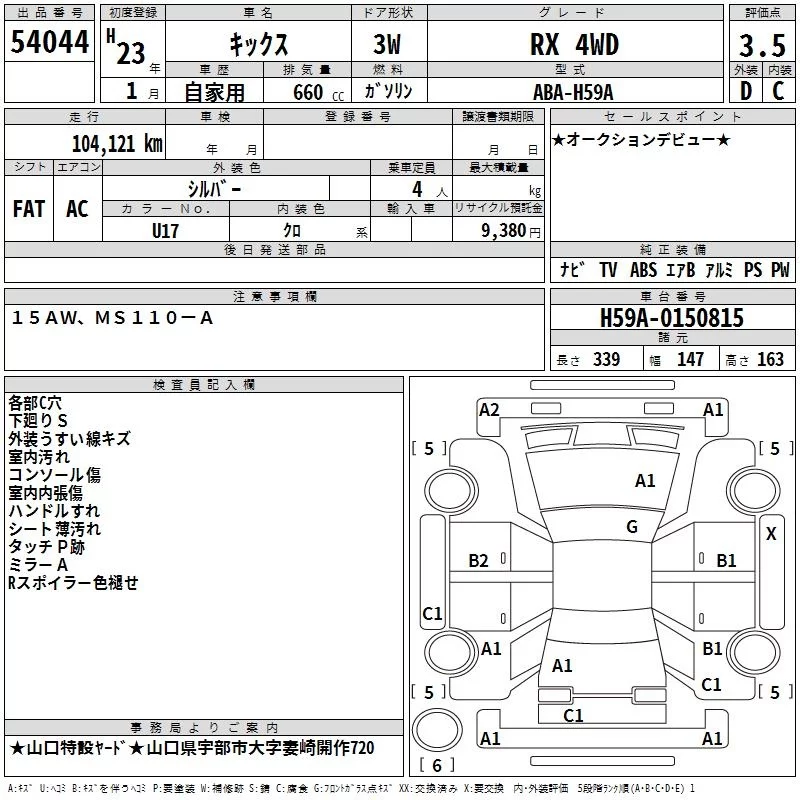 Nissan KIX с аукциона Японии TAA Hiroshima лот № 54044