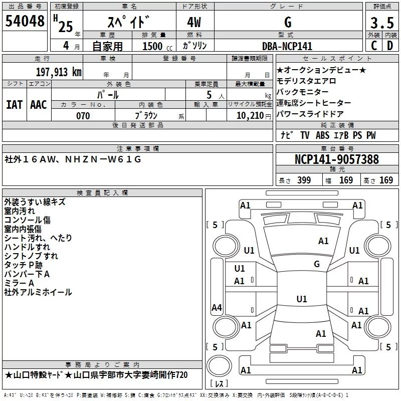 Toyota SPADE с аукциона Японии TAA Hiroshima лот № 54048