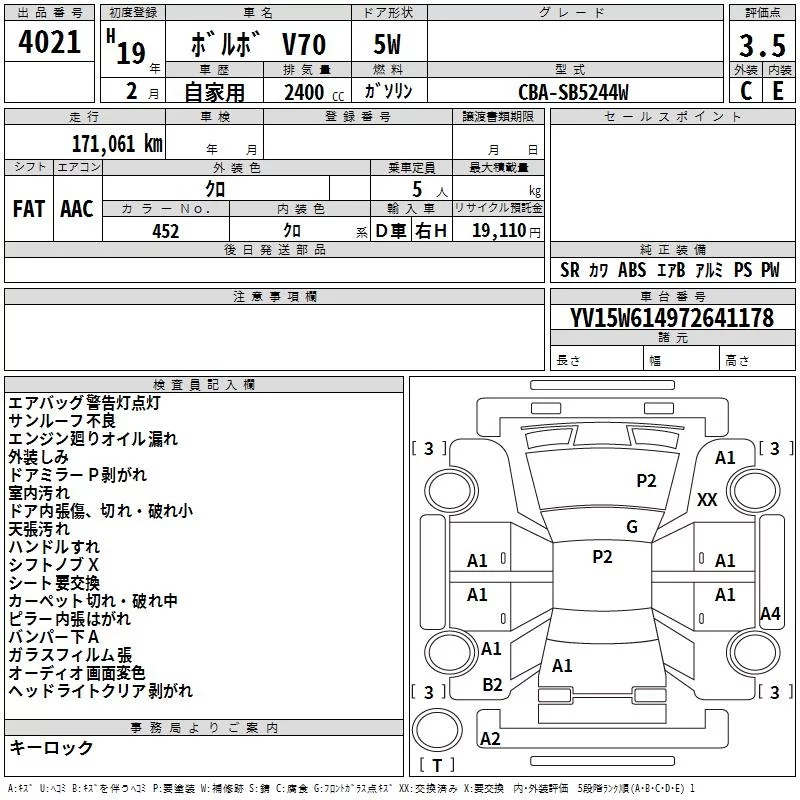 Volvo V70 с аукциона Японии TAA Shikoku лот № 4021