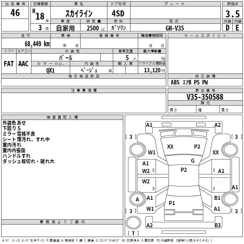 Nissan SKYLINE с аукциона Японии TAA Kyushu лот № 46