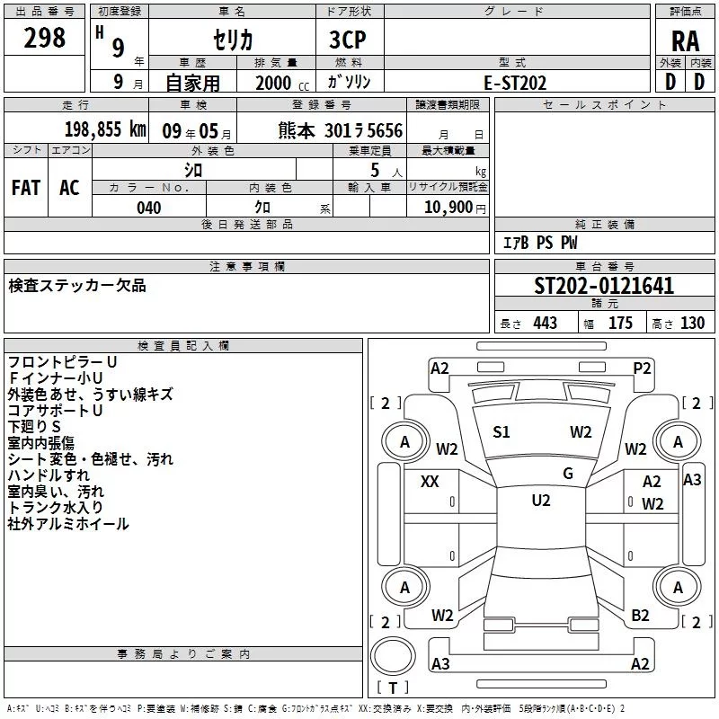 Toyota CELICA с аукциона Японии TAA Kyushu лот № 298