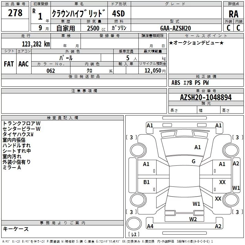 Toyota CROWN с аукциона Японии TAA Kyushu лот № 278