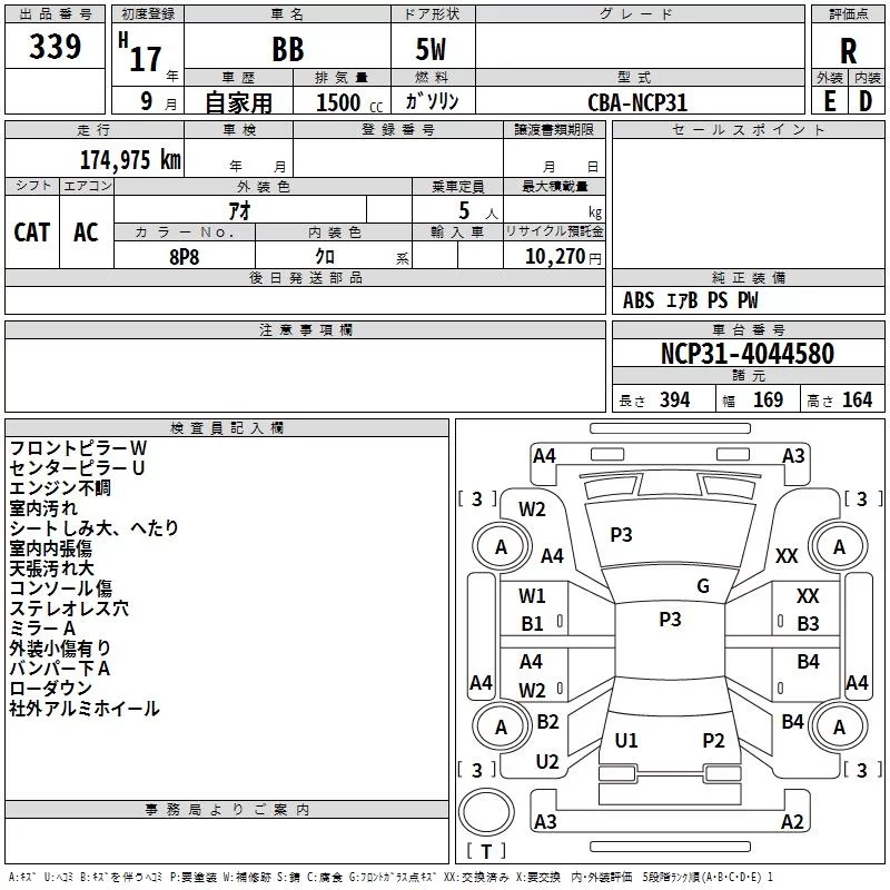 Toyota BB с аукциона Японии TAA Kyushu лот № 339