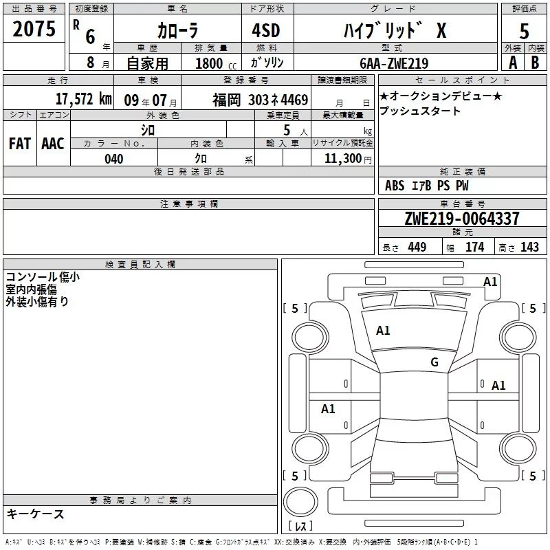 Toyota COROLLA с аукциона Японии TAA Kyushu лот № 2075