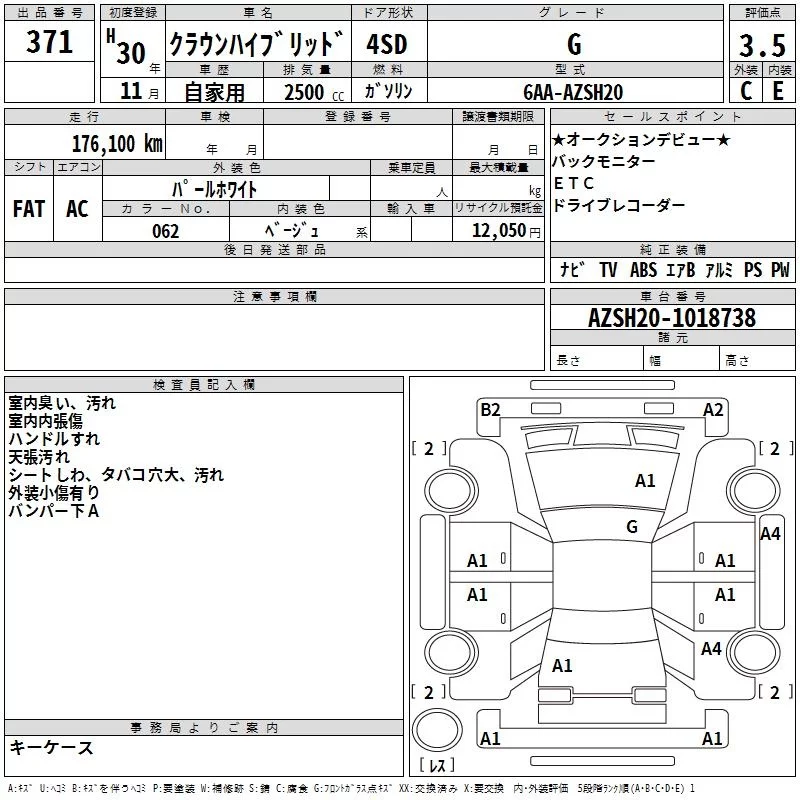 Toyota CROWN с аукциона Японии TAA Kyushu лот № 371