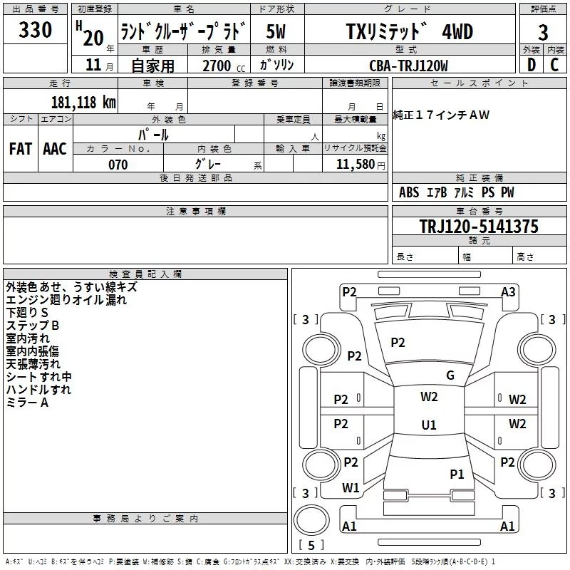 Toyota LAND CRUISER PRADO с аукциона Японии TAA Kyushu лот № 330