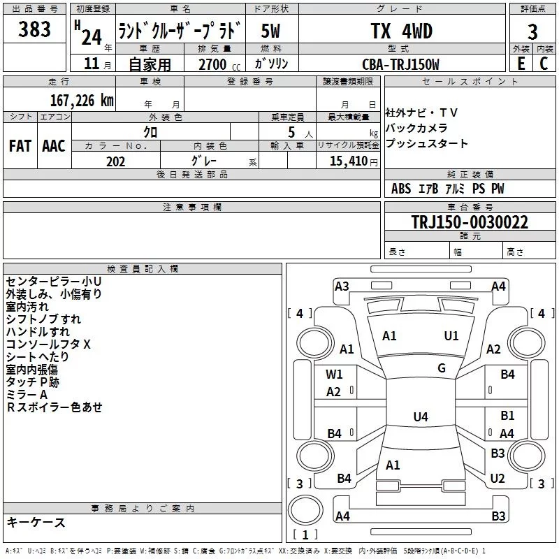 Toyota LAND CRUISER PRADO с аукциона Японии TAA Kyushu лот № 383