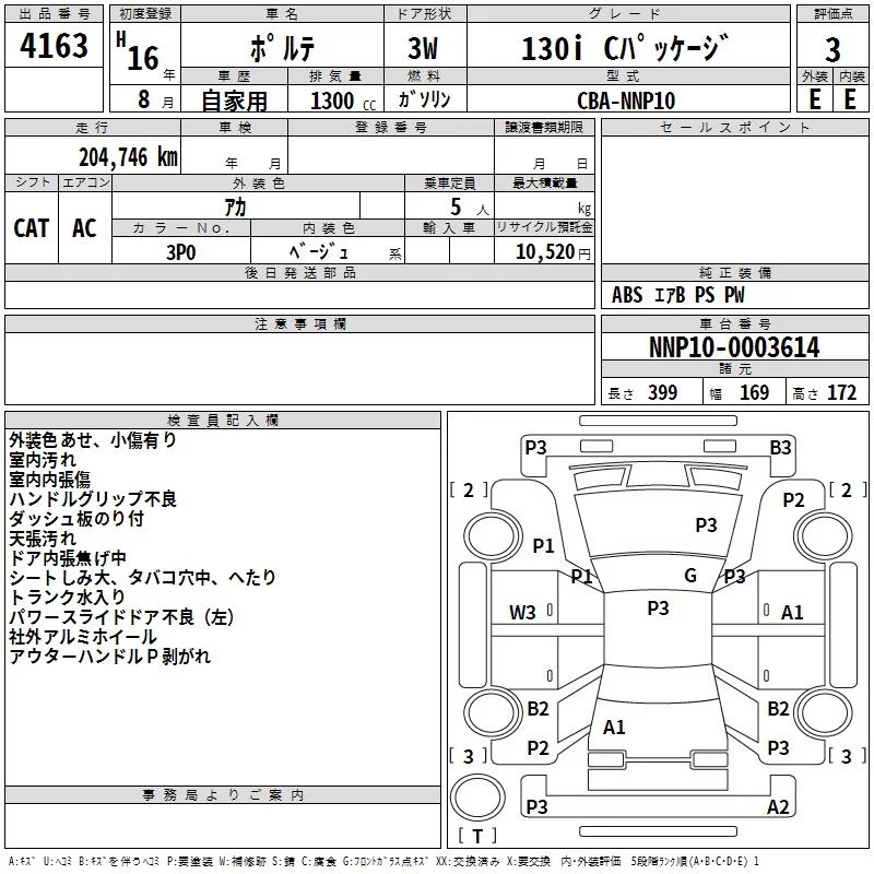 Toyota PORTE с аукциона Японии TAA Kyushu лот № 4163
