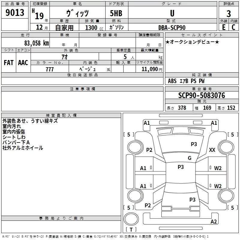 Toyota VITZ с аукциона Японии TAA Kyushu лот № 9013