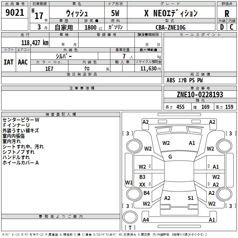 Toyota WISH с аукциона Японии TAA Kyushu лот № 9021