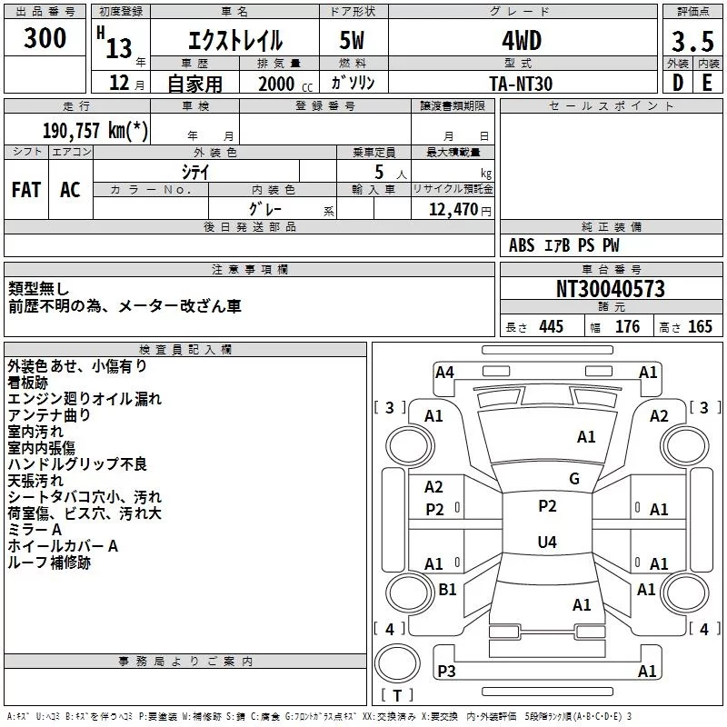 Nissan X-TRAIL с аукциона Японии TAA Kyushu лот № 300
