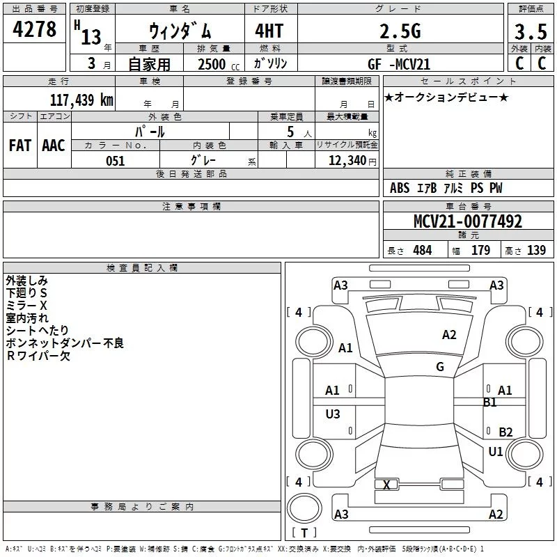 Toyota WINDOM с аукциона Японии TAA Kyushu лот № 4278