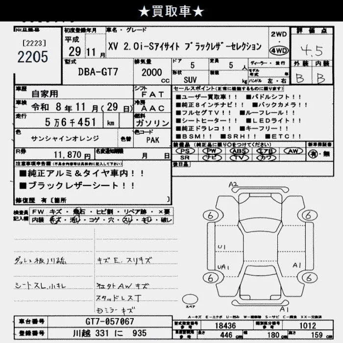 Subaru XV с аукциона Японии JU Saitama лот № 2205