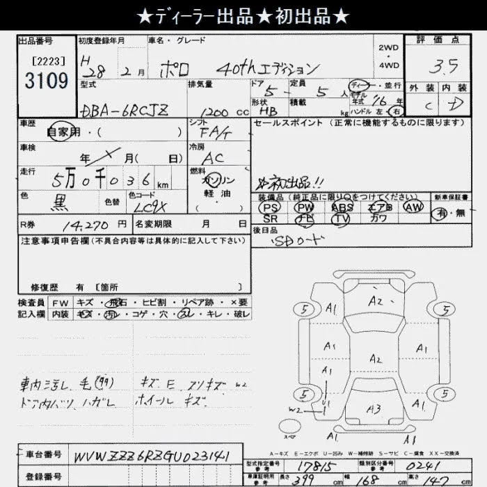 Volkswagen Polo с аукциона Японии JU Saitama лот № 3109
