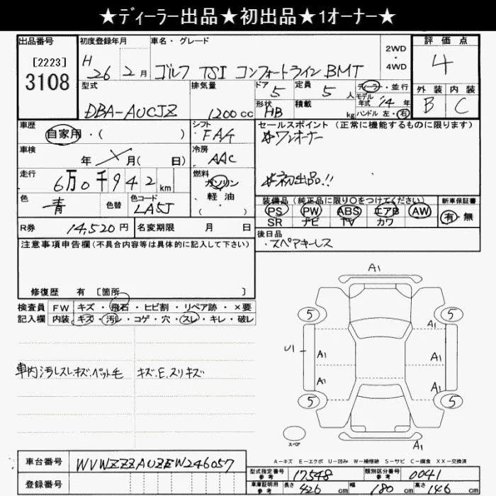 Volkswagen Golf с аукциона Японии JU Saitama лот № 3108