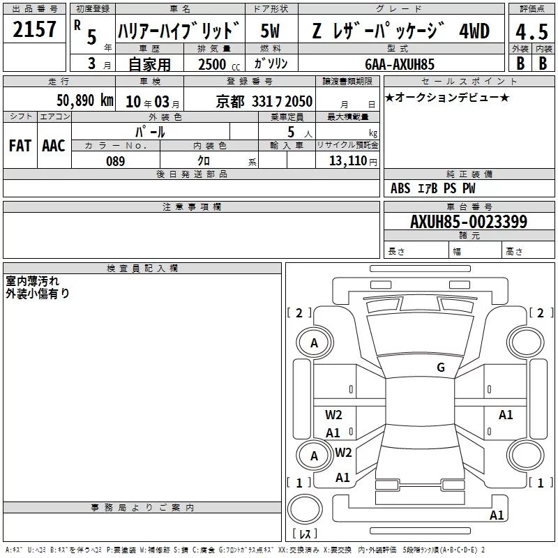 Toyota HARRIER с аукциона Японии TAA Kinki лот № 2157