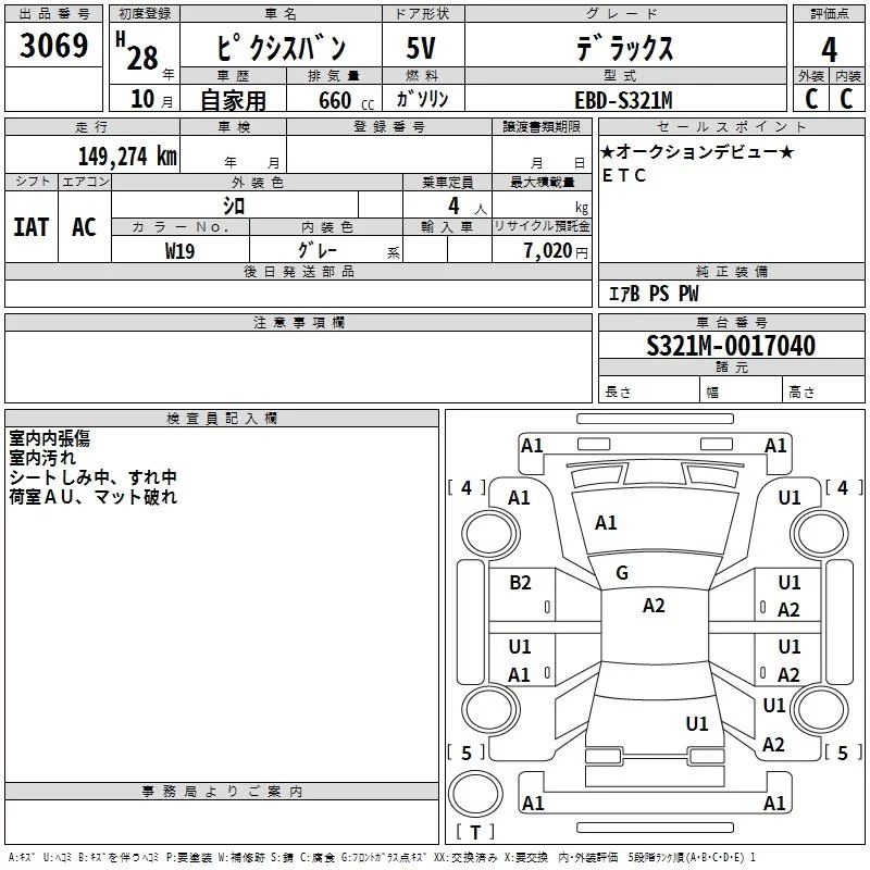 Toyota PIXIS VAN с аукциона Японии TAA Kinki лот № 3069