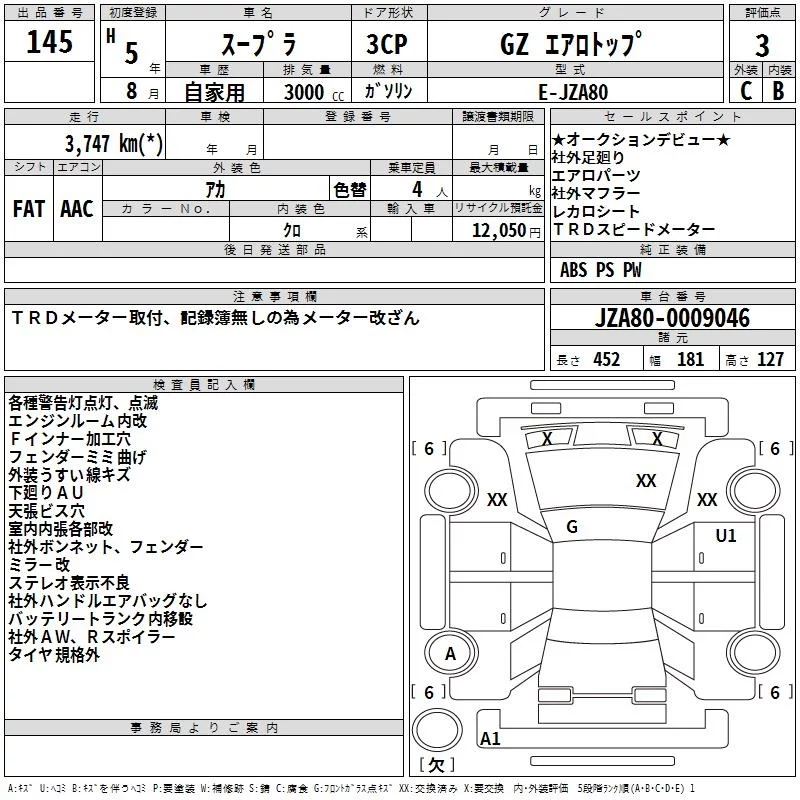 Toyota SUPRA с аукциона Японии TAA Kinki лот № 145