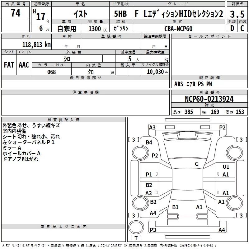 Toyota IST с аукциона Японии TAA Kinki лот № 74