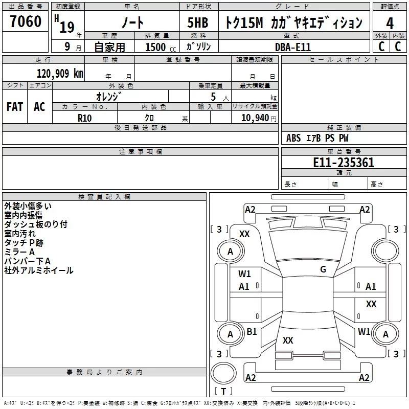 Nissan NOTE с аукциона Японии TAA Kinki лот № 7060