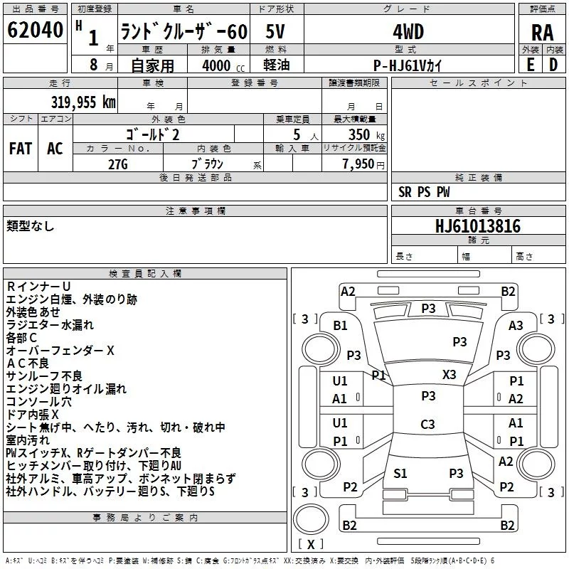 Toyota LAND CRUISER с аукциона Японии TAA Kinki лот № 62040