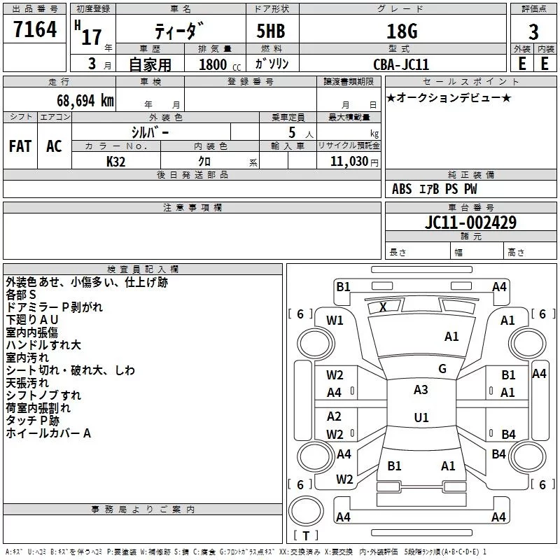 Nissan TIIDA с аукциона Японии TAA Kinki лот № 7164