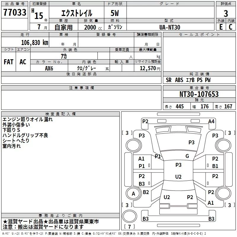 Nissan X-TRAIL с аукциона Японии TAA Kinki лот № 77033