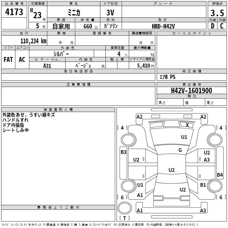Mitsubishi MINICA с аукциона Японии TAA Shikoku лот № 4173
