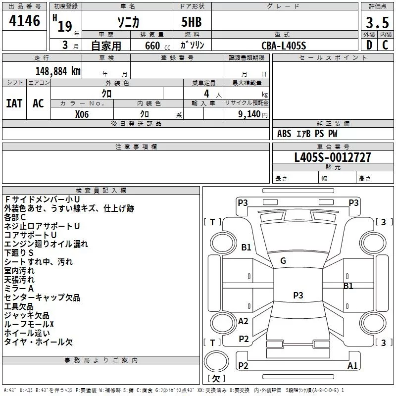 Daihatsu SONICA с аукциона Японии TAA Shikoku лот № 4146