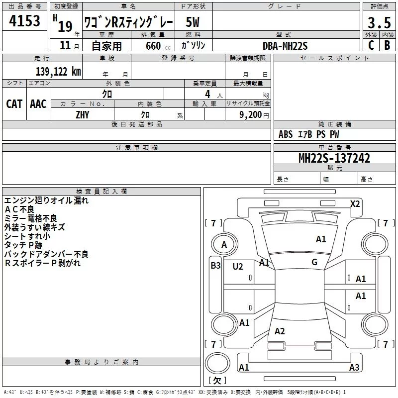 Suzuki WAGON R с аукциона Японии TAA Shikoku лот № 4153