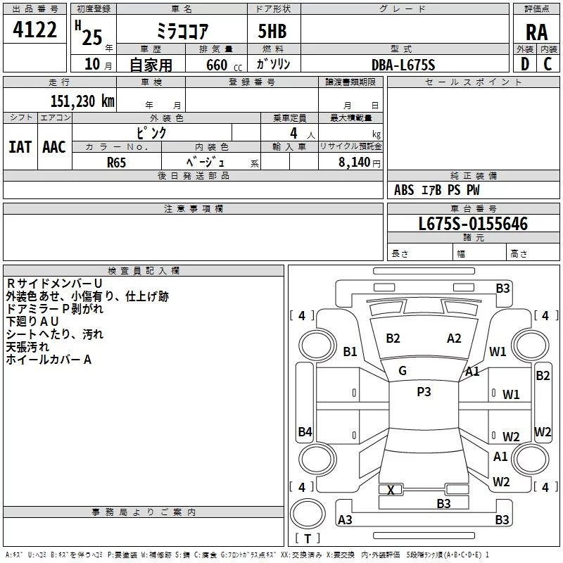 Daihatsu MIRA с аукциона Японии TAA Shikoku лот № 4122