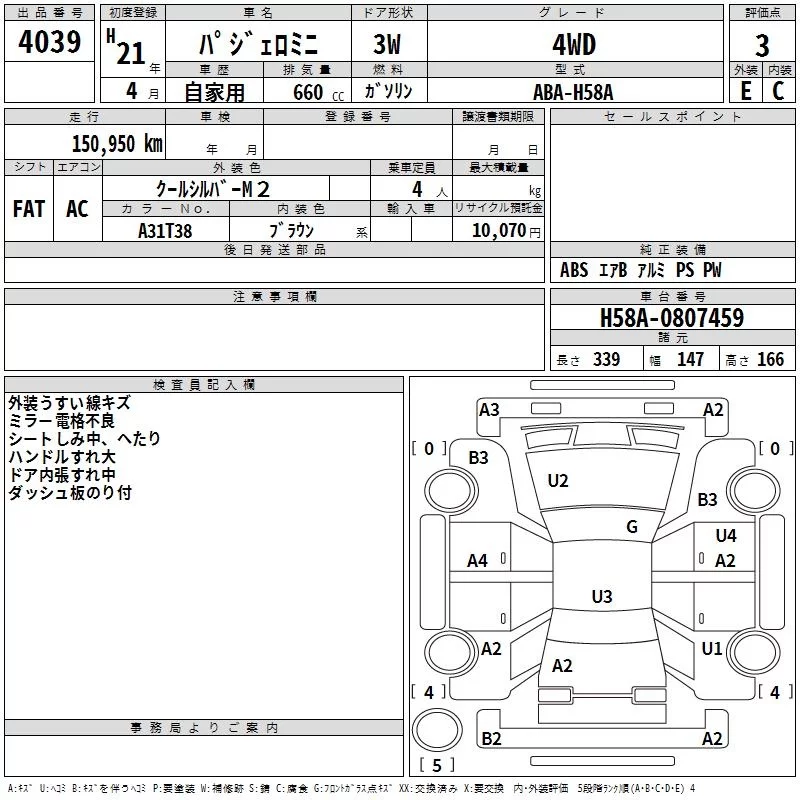 Mitsubishi PAJERO MINI с аукциона Японии TAA Shikoku лот № 4039