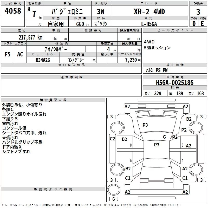 Mitsubishi PAJERO MINI с аукциона Японии TAA Shikoku лот № 4058