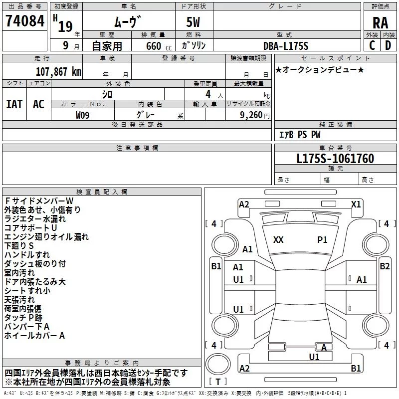 Daihatsu MOVE с аукциона Японии TAA Shikoku лот № 74084
