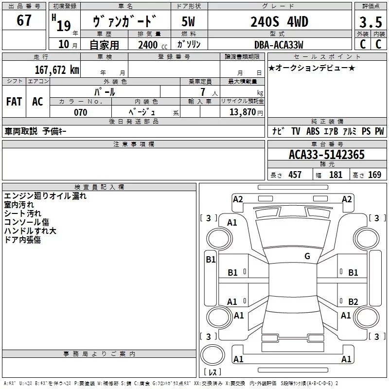 Toyota VANGUARD с аукциона Японии TAA Shikoku лот № 67