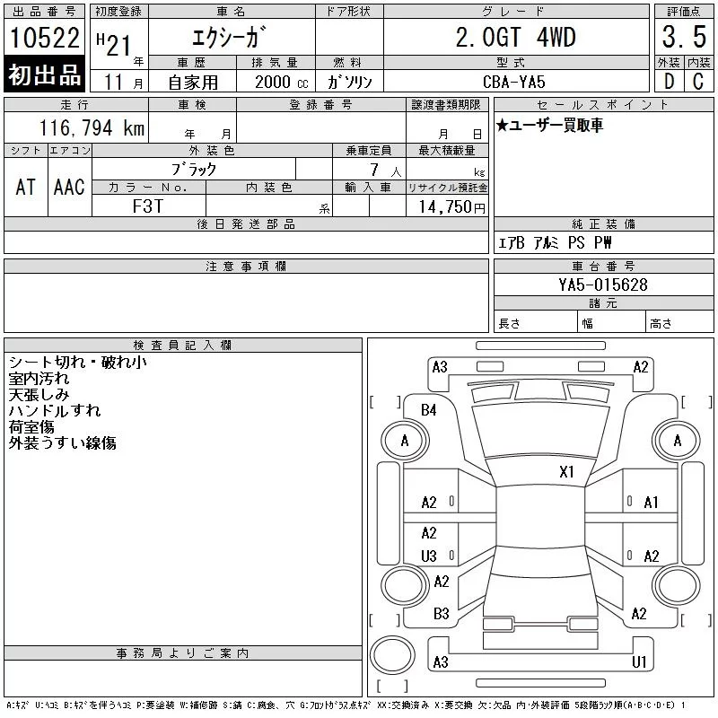 Subaru EXIGA с аукциона Японии CAA Tokyo лот № 10522