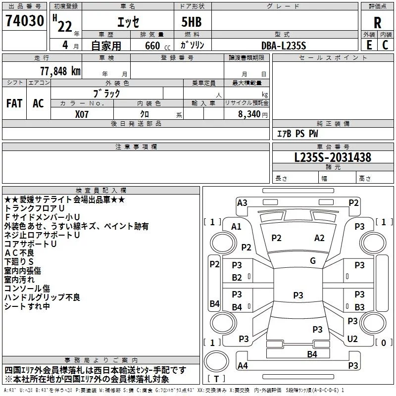 Daihatsu Esse с аукциона Японии TAA Shikoku лот № 74030