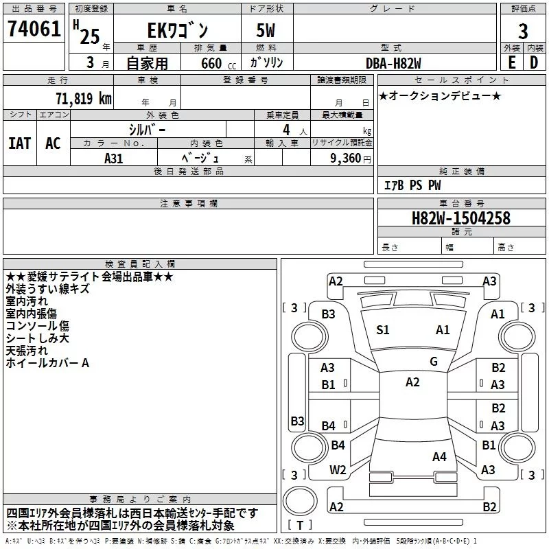Mitsubishi EK WAGON с аукциона Японии TAA Shikoku лот № 74061