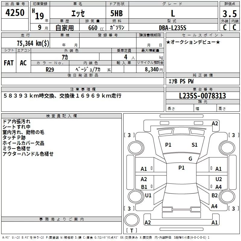 Daihatsu Esse с аукциона Японии TAA Shikoku лот № 4250