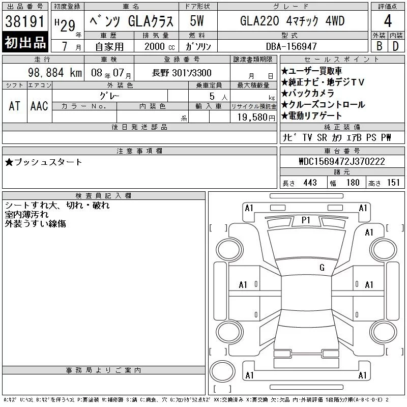 Mercedes-Benz GLA CLASS с аукциона Японии CAA Tokyo лот № 38191