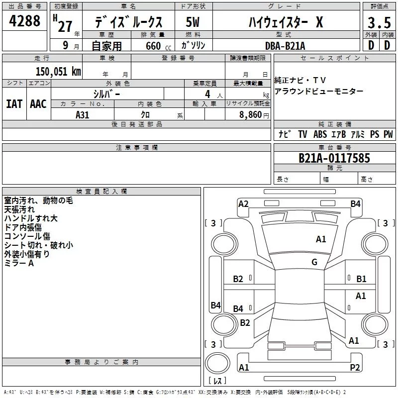 Nissan DAYZ ROOX с аукциона Японии TAA Shikoku лот № 4288